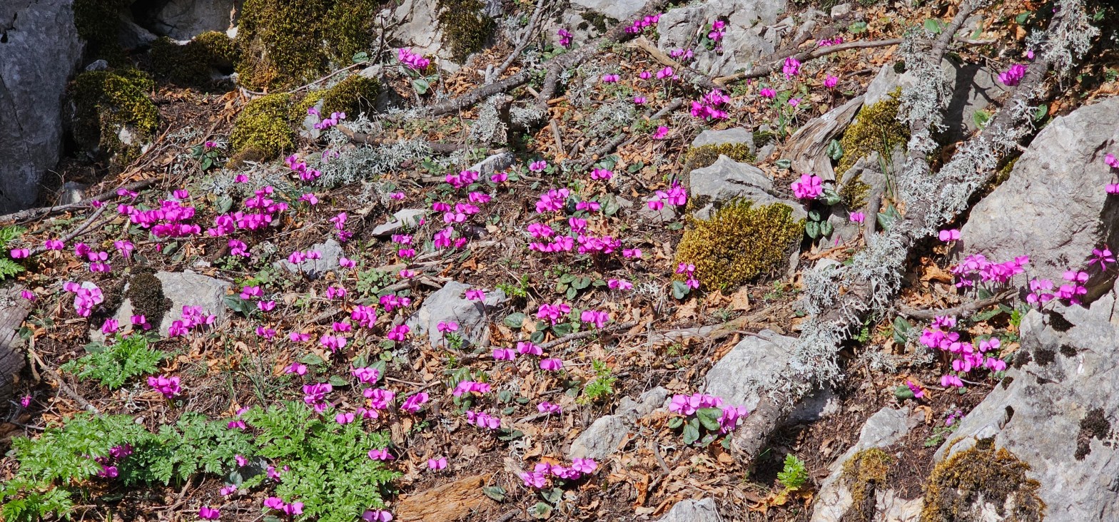 Our first day we saw Colchicum burtii, Crocus fleisheri, and Crocus lyciotauricus on a rocky stony slope. But my favorites of the tour were what I grow in my greenhouse: Cyclamen graecum and C. alpinum. The crocus and colchicum were at specific locations but the cyclamen were everywhere.