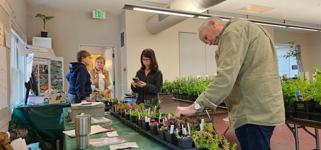 There was one ramonda sold to place in a terrarium. Why not? It was assumed to be a succulent. Well. This seems to characterize our problem with membership. No one knows what we grow or why. Yes we all know the performance and beauty of the plants. But the public doesn’t. Think back to your first exposure to rock gardening. Mine was a vision of the plants. So let’s see what is blooming next May and show it for a public sale!