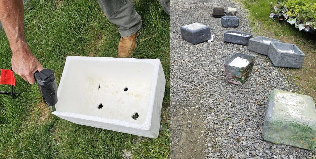 Our meeting in the BBG Education Classroom on June 8th was a hothouse of creativity. What started life as closed-cell extruded polystyrene foam (styrofoam) shipping containers was upscaled to light-weight planters (troughs). Best of all, members got to enjoy the process as well as their friends.